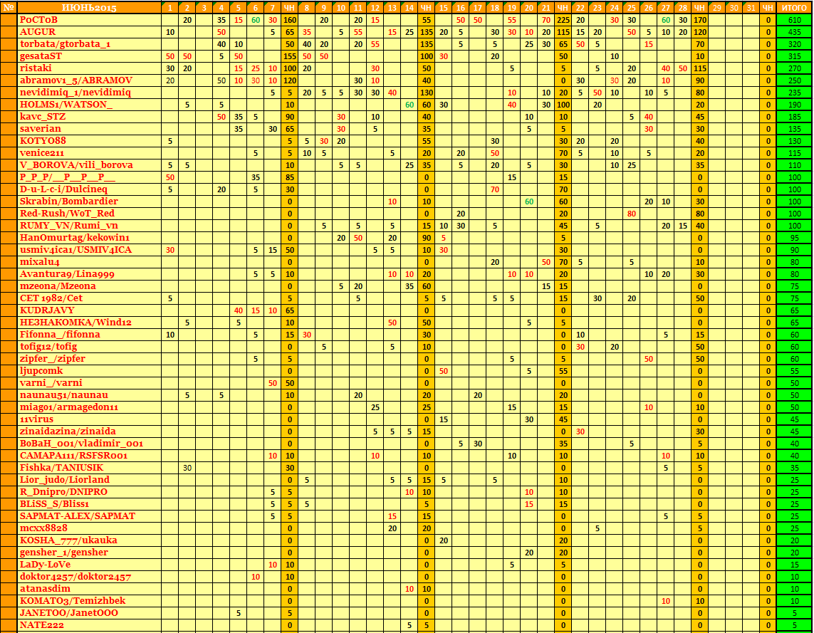 1 место - 50 очков и 20 в репутацию - Wot_Red 2 место - 30 очков и 15 в репутацию -POCTOB 1/2 фин - 20 очков и 5 в репутацию - vili_borova , ristaki