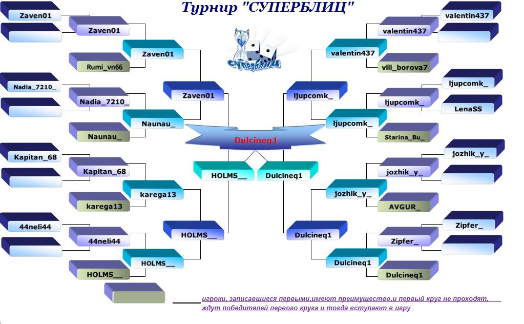 | Турнир "СУПЕРБЛИЦ" . Начало игры в 20:00 по Москве. В турнире принимают участие первые записавшиеся 8, 16 или 32 игрока.