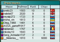 | Турнир "Чемпион" проходит по будним дням. Начало нокаутов в 20:00, начало свингов в 22:00 по Москве.