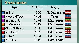 | neli_vt - ИГРАЛА В ТРИ НОКАУТ ЧЕМПИОН - НЕ ЗАЧЕТ 17.01.2011 НОКАУТ - ЧЕМПИОН 20:00 17.01.2011 НОКАУТ - ЧЕМПИОН 20:10 17.01.2011 НОКАУТ - ЧЕМПИОН 20:16 17.01.2011 НОКАУТ - ЧЕМПИОН 20:05 17.01.2011 НОКАУТ - ЧЕМПИОН 20:15