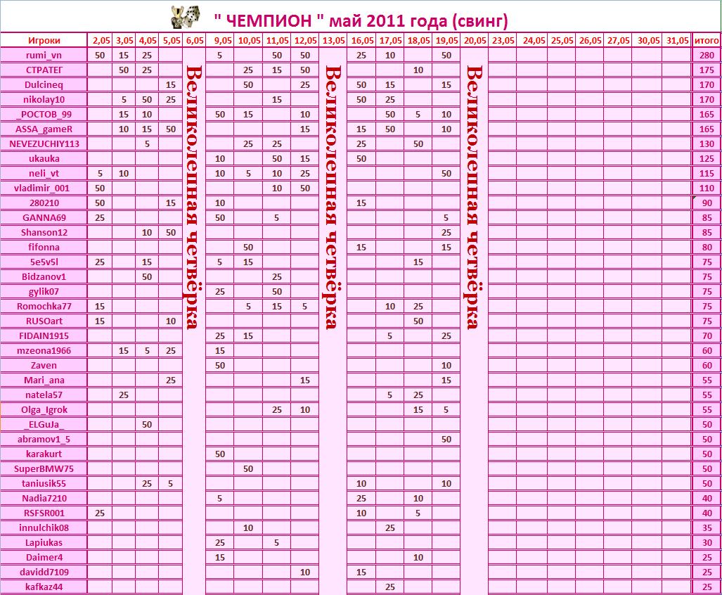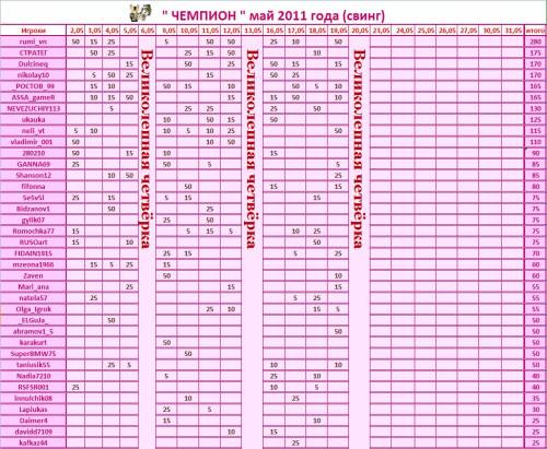 | 25.05.2011Г. ЧЕМПИОН СВИНГ 22:00